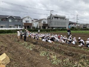 学校の給食でもよくお世話になる大澤農園さんが、精魂込めて育てたさつまいもを、2年生が元気に収穫しました。