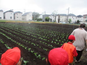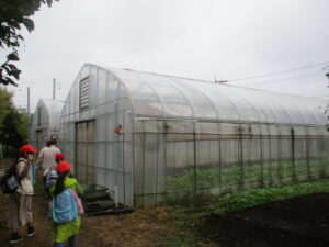 途中、小雨が降るなかでしたが、3年生が大澤農園を見学しました。