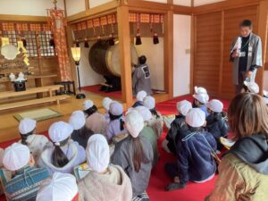 「この鏡はなんですか」「この太鼓は何に使うのですか」様々な質問に、丁寧に説明していただき、メモを素早くとる姿が印象的でした。