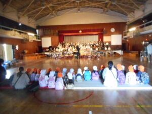 明日の連合音楽会本番に向けた最後の練習を、ぬくい保育園の年長さんが見学に来ました。