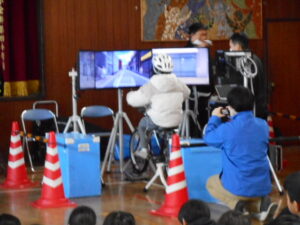 3年生が、自転車交通安全シュミレーター講習会を行いました。