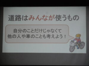 道路はみんなが使うもの。自分のことだけじゃなくて、他の人や車の事も考えて、安全に運転していくことが大切です。