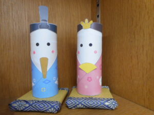 毎週火曜日(10時から11時30分)は、図書ボランティアさんが図書室の環境整備を行ってくださっています。今日の図書室にはたくさんのお雛飾りがありました。