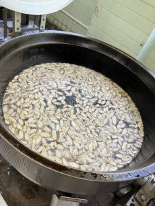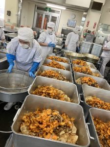 じゃがいも、さつまいも、にんじん、ごぼうを学年ごとに分けて味付けしていきます。