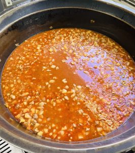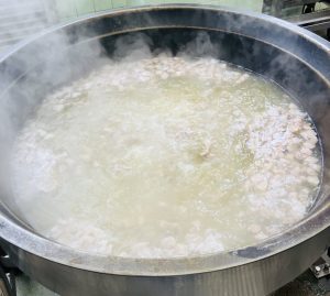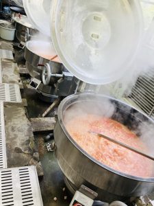 アメリカでは、白いんげん豆を使うことが多いですが、給食では大豆を使っています。