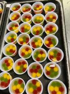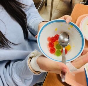 学級閉鎖の影響であまったゼリーは、ボールに入れて各クラスに配りました♪
