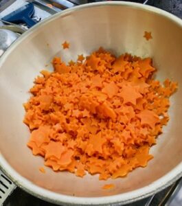 ハロウィンスープには、星形にんじんや紫芋、かぼちゃを入れてカラフルに♪