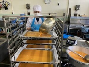 人のいない日曜日の給食室で、オムライス作りスタート!