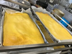 卵液を鉄板に流して大きな卵焼きを焼きます!