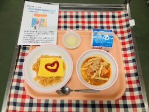 給食室の仲間が引退してしまうせきさんのために作っていたオムライスを再現しました!