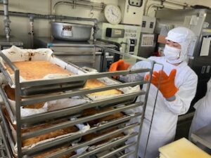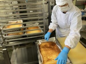 給食室のオーブンで焼き上げたふわふわのカステラ♪