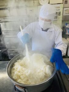 学校給食で使用することで、『ごはん食の重要性』、『お米の備蓄制度』を理解してもらうために一部、無償で交付してくれています。