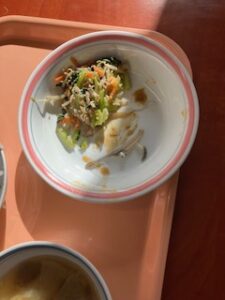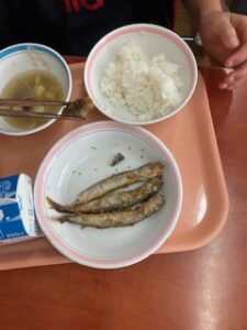 今日の給食は、「ししゃものごま絡め」と「さつま汁」でした。