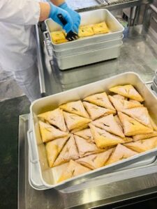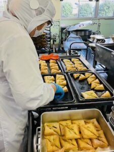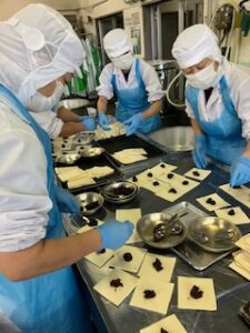 みんなでパイ生地の成型!あんこを包んでいきます♪