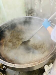 だしをとった後の昆布を刻んで、調味料と一緒に炒めます。