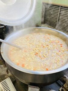 今月は、環境を考えた献立として、普段は捨ててしまうことの多い昆布のだしガラを活用した“エコンブ佃煮”と、小金井産の野菜と東京都産のみそを使った地産地消メニューを提供しました。