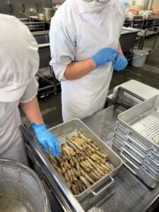 揚がったら数を確認しながらバットに入れていきます。