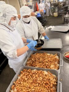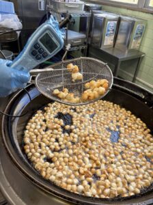 米粉をつけて揚げます。米粉を使うこととサクサク、カリっとした食感に!