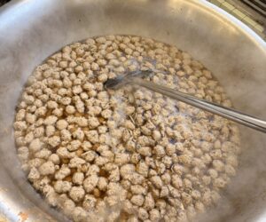 今日はこの節分に合わせて、揚げ大豆を混ぜたごはんと、節分豆、いわしを入れたつみれ汁を作りました。