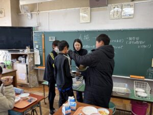 残ったサラダのおかわりに協力してくれる6年生✨