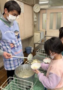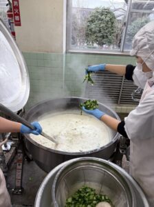 貴重な小金井の味、子供たちは「この緑色のが芯とり菜かな??」なんて言いながら味わっていました♪