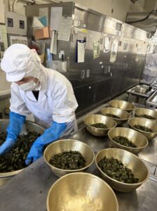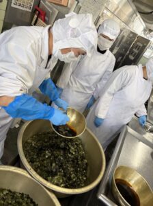 オーブンで温度を上げた刻みのりに、特製のタレをかけて混ぜていきます。